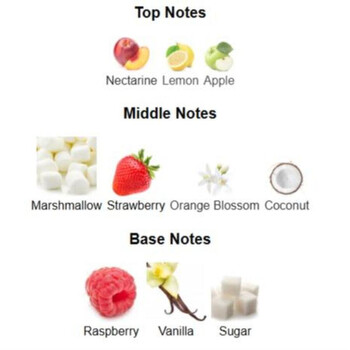 - Marshmallow, Strawberry, Orange blossom, Coconut