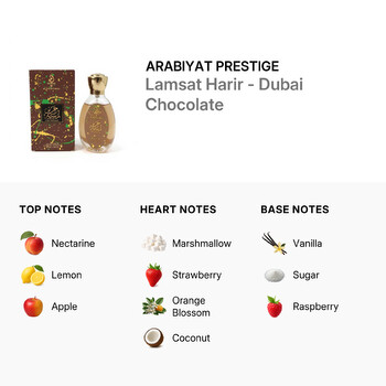 Lamsat Harir - Dubai Chocolate is more than just a fragrance; it’s a sensory journey that balances fruity brightness with creamy depth. Whether you're heading to a special event or simply want to feel confident every day, this scent adds a touch of luxury and charm to any occasion. Perfect for any season, its unisex appeal makes it a great choice for anyone who loves unique, dessert-inspired aromas.