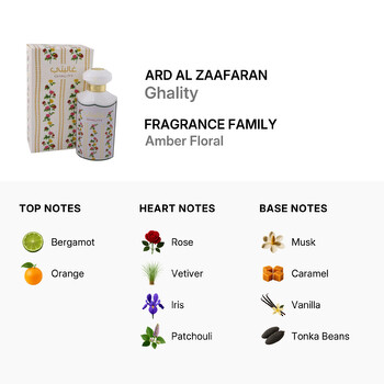 Designed for the modern woman, Ghality is more than just a fragrance; it's an experience that speaks to elegance and timeless beauty. The carefully curated blend of notes ensures a long-lasting scent that will accompany you through every moment of your day. Whether you're stepping into an important meeting or enjoying an evening out, Ghality by Ard Al Zaafaran will leave a lasting impression.