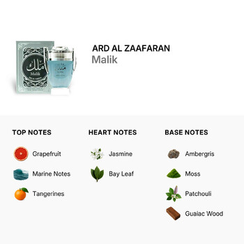 The base notes of Malik are where its true character shines, offering an earthy and woody foundation with ambergris, moss, patchouli, and guaiac wood. These elements provide a warm and sensual finish that lingers on the skin, making it ideal for both daytime wear and evening occasions.
