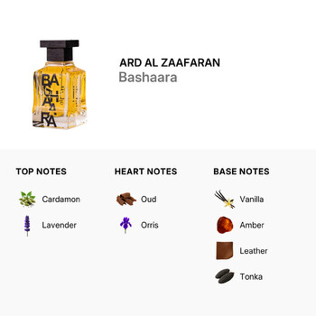 Bashaara opens with invigorating top notes of cardamom and lavender, creating an instantly refreshing and inviting aura. As the scent evolves, the heart notes of oud and orris emerge, adding a mysterious and elegant depth that resonates with both strength and grace. The journey culminates in a warm, embracing base of vanilla, amber, leather, and tonka, leaving a luxurious and lasting impression.