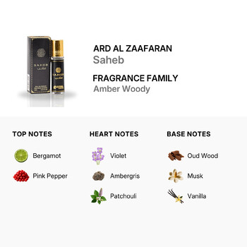 Belonging to the amber woody fragrance family, Saheb is designed for those who enjoy depth and elegance in their daily scent. The perfume oil format ensures a concentrated and long-lasting aroma, while the handy rollerball design makes it perfect for travel or on-the-go touch-ups.