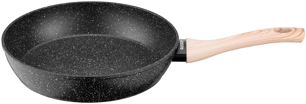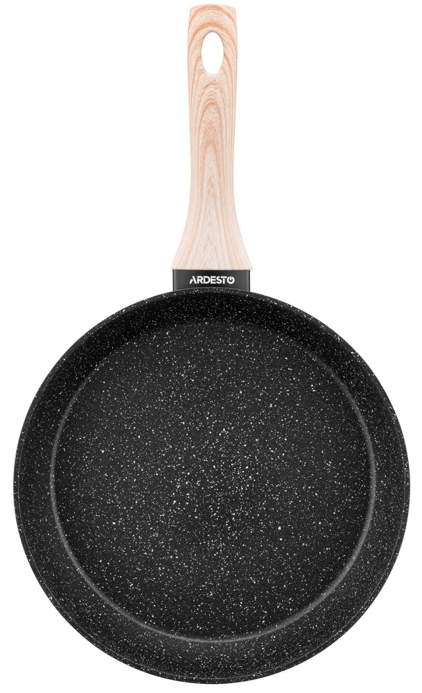 Ardesto Midori 26 სმ-იანი ტაფა დამზადებულია ალუმინისგან და გამოირჩევა შავი მარმარილოს დიზაინით.