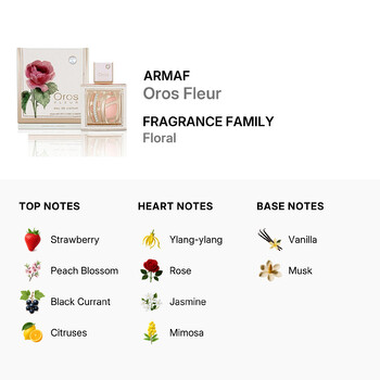 Armaf Oros Fleur is more than a fragrance—it's a statement of grace, style, and beauty. Treat yourself or gift a loved one with this charming scent in a perfectly sized 2.9 oz bottle. Barcode: 6085010093512.