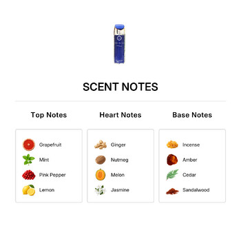- Grapefruit, Mint, Pink pepper, Lemon, Coriander