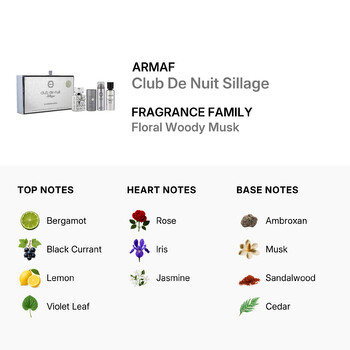 The fragrance settles into a deep, lasting base of Ambroxan, Musk, Sandalwood, and Cedar. These notes ensure a warm and woody finish that lingers on the skin, creating a memorable and enduring scent experience. The Club De Nuit Sillage is not just a fragrance; it is an embodiment of elegance and refinement, perfect for any occasion.