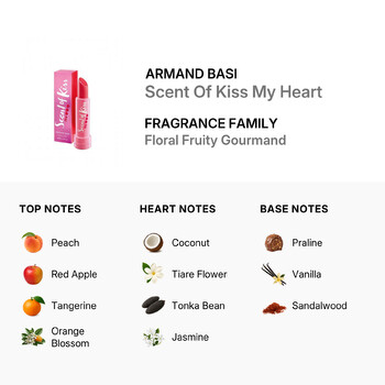 Crafted by the renowned design house of Armand Basi, "Scent Of Kiss My Heart" is presented in a convenient 1.7 oz bottle, making it an ideal choice for daily wear or special occasions. Its unique blend of fruity, floral, and gourmand notes makes this perfume a versatile addition to any fragrance collection.