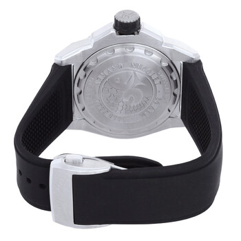 Silver-tone stainless steel case with a black rubber strap. Rotating blue and orange ceramic bezel. Black dial with silver-tone hands and index hour markers. Minute markers around the outer rim. Dial Type: Analog. Luminescent hands and markers. Date display at the 6 o'clock position. Sellita Caliber SW330 Automatic movement, containing 25 Jewels, bitting at 28800 vph, and has a power reserve of approximately 42 hours. Scratch resistant sapphire crystal. Solid case back. Round case shape, case size: 41 mm. Deployment clasp. Water resistant at 300 meters / 1000 feet. Functions: date, GMT, second time zone, hour, minute, second. Jsh Series. Watch label: Swiss Made. Armand Nicolet JSH GMT Automatic Black Dial Men's Watch A487RGN-NO-GG2710N.