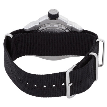 Silver-tone stainless steel case with a black NATO band. Rotating blue and orange ceramic bezel. Silver-tone hands and index hour markers. Minute markers around the outer rim. Dial Type: Analog. Luminescent hands and markers. Date display at the 6 o'clock position. Sellita Caliber SW330 Automatic movement, containing 25 Jewels, bitting at 28800 vph, and has a power reserve of approximately 42 hours. Scratch resistant sapphire crystal. Solid case back. Round case shape, case size: 41 mm. Tang clasp. Water resistant at 300 meters / 1000 feet. Functions: date, GMT, second time zone, hour, minute, second. Jsh Series. Watch label: Swiss Made. Armand Nicolet JSH GMT Automatic Men's Watch A487RGN-KO-BN22481AANN.