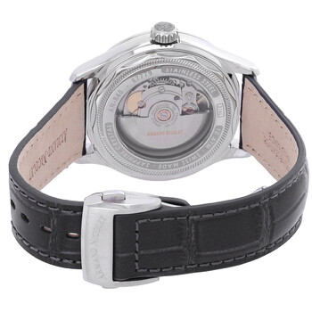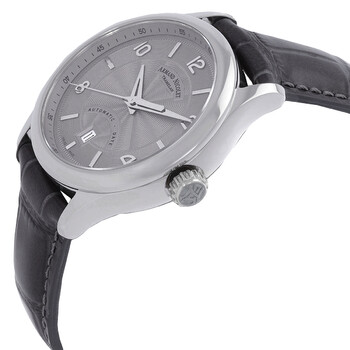 Silver-tone stainless steel case with a black leather strap. Fixed silver-tone stainless steel bezel. Grey dial with silver-tone hands and index-Arabic numeral hour markers. Minute markers around the outer rim. Dial Type: Analog. Date display at the 3 o'clock position. Automatic movement. Scratch resistant sapphire crystal. Solid case back. Round case shape, case size: 42 mm, case thickness: 13 mm. Band width: 22 mm. Deployment buckle clasp. Water resistant at 100 meters / 330 feet. Functions: date, hour, minute, second. M02-4 Series. Sport watch style. Watch label: Swiss Made. Armand Nicolet M02-4 Automatic Grey Dial Men's Watch A840AAA-GR-P840GR2.