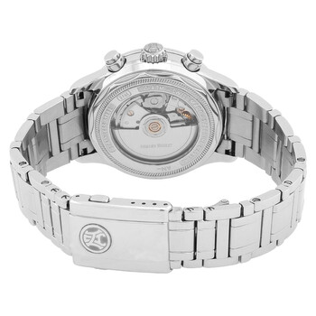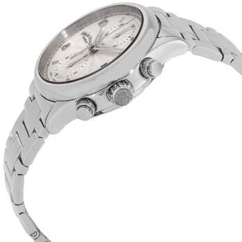 Silver-tone stainless steel case and bracelet. Fixed silver-tone stainless steel bezel. Silver dial with silver-tone hands and index-Arabic numeral hour markers. Minute markers around the outer rim. Dial Type: Analog. Date display at the 3 o'clock position. Chronograph - two sub-dials displaying: 30 minute and 12 hour. Calibre SW-500 automatic movement. Scratch resistant sapphire crystal. Transparent case back. Round case shape, case size: 42 mm. Band width: 22 mm. Water resistant at 100 meters / 330 feet. Functions: chronograph, date, hour, minute, second. M02-4 Series. Sport watch style. Watch label: Swiss Made. Armand Nicolet M02-4 Chronograph Automatic Silver Dial Men's Watch A844AAA-AG-M9742.