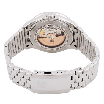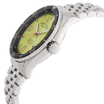The 41 mm stainless steel case features a fixed black acrylic bezel. The frosted dial comes in four variations of colors.