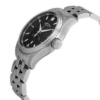 Stainless steel case with a stainless steel bracelet. Fixed stainless steel bezel. Black dial with luminous silver-tone hands and index hour markers. Arabic numeral minute markers (at 5 minute intervals). Minute markers around the outer rim. Dial Type: Analog. Luminescent hands and markers. Date display above the 6 o'clock position. ETA caliber 2824-2 automatic movement, based upon ETA 2824, containing 25 Jewels, bitting at 28800 vph, and has a power reserve of approximately 38 hours. Scratch resistant sapphire crystal. Pull / push crown. Transparent case back. Round case shape. Case size: 42 mm. Case thickness: 13 mm. Fold over clasp with a push button release. Water resistant at 100 meters / 330 feet. Functions: date, hour, minute, second. Mh2 Series. Dress watch style. Watch label: Swiss Movt. Armand Nicolet MH2 Automatic Black Dial Men's Watch A640A-NR-MA2640A.