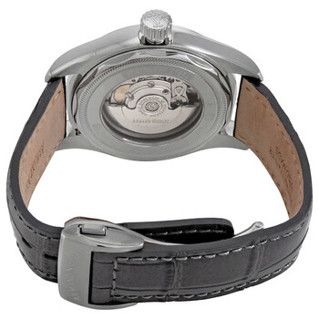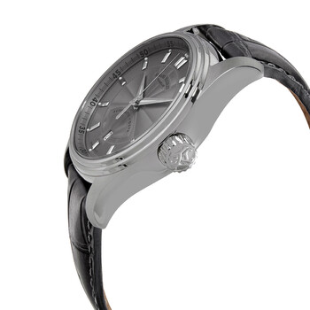 Stainless steel case with a grey (calfskin) leather strap. Fixed stainless steel bezel. Grey dial with luminous silver-tone hands and index hour markers. Arabic numeral minute markers (at 5 minute intervals). Minute markers around the outer rim. Dial Type: Analog. Luminescent hands and markers. Date display at the 6 o'clock position. ETA caliber 2824-2 automatic movement, based upon ETA 2824, containing 25 Jewels, bitting at 28800 vph, and has a power reserve of approximately 38 hours. Scratch resistant sapphire crystal. Screw down crown. Transparent case back. Round case shape. Case size: 43 mm. Case thickness: 13 mm. Band width: 22 mm. Deployment clasp. Water resistant at 100 meters / 330 feet. Functions: date, hour, minute, second. MH2 Series. Luxury watch style. Watch label: Swiss Movt. Armand Nicolet MH2 Automatic Grey Dial Men's Watch A640A-GR-P840GR2.