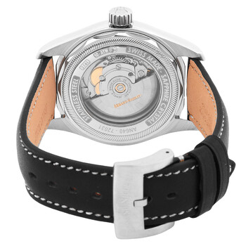 Silver-tone stainless steel case with a black leather strap. Fixed silver-tone stainless steel bezel. Acqua dial with silver-tone hands and index hour markers. Arabic numeral minute markers (at 5 minute intervals). Minute markers around the outer rim. Dial Type: Analog. Luminescent hands and markers. Date display at the 6 o'clock position. Automatic movement. Scratch resistant sapphire crystal. Pull / push crown. Transparent see through case back. Round case shape, case size: 43 mm. Tang clasp. Water resistant at 100 meters / 330 feet. Functions: date, hour, minute, second. Mh2 Series. Sport watch style. Watch label: Swiss Made. Armand Nicolet MH2 Automatic Men's Watch A640A-TF-P140NR2.