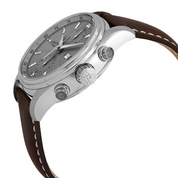 Stainless steel case with a brown leather strap. Fixed stainless steel bezel. Grey dial with luminous silver-tone hands and index hour markers. Arabic numeral minute markers (at 5 minute intervals). Minute markers, Tachymeter markers around the outer rim. Dial Type: Analog. Luminescent hands and markers. Day of the week and date display at the 3 o'clock position. Chronograph - two sub-dials displaying: 30 minute and 12 hour. Sellita caliber SW500 automatic movement, containing 25 Jewels, bitting at 28800 vph, and has a power reserve of approximately 44 hours. Scratch resistant sapphire crystal. Transparent case back. Round case shape. Case size: 42 mm. Case thickness: 15 mm. Tang clasp. Water resistant at 100 meters / 330 feet. Functions: chronograph, date, day, hour, minute, small second. Mh2 Series. Dress watch style. Watch label: Swiss Made. Armand Nicolet MH2 Chronograph Automatic Grey Dial Men's Watch A647A-GR-P140MR2.