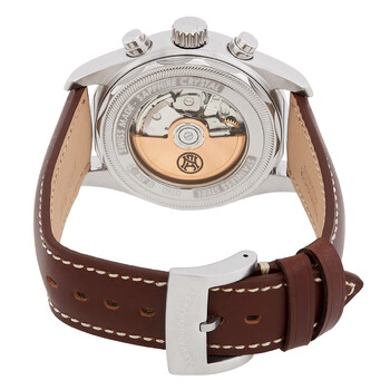 Silver-tone stainless steel case with a brown leather strap. Fixed silver-tone stainless steel bezel. Salmon dial with index hour markers. Arabic numeral minute markers (at 5 minute intervals). Minute markers, tachymeter markers around the outer rim. Dial Type: Analog. Luminescent hands and markers. Day of the week and date display at the 3 o'clock position. Chronograph - sub-dials displaying: two -30 minute and 12 hour. Sellita Caliber SW500 Automatic movement, containing 25 Jewels, bitting at 28800 vph, and has a power reserve of approximately 44 hours. Scratch resistant sapphire crystal. Transparent case back. Round case shape, case size: 43 mm. Buckle clasp. Water resistant at 100 meters / 330 feet. Functions: chronograph, date, day, hour, minute, small second. Mh2 Series. Dress watch style. Watch label: Swiss Made. Armand Nicolet MH2 Chronograph Automatic Men's Watch A647A-SM-P140MR2.