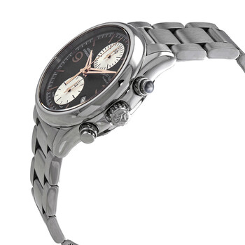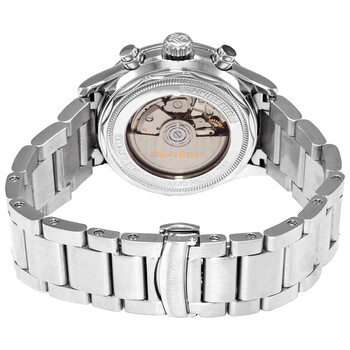 Stainless steel case with a stainless steel bracelet. Fixed stainless steel bezel. Black dial with rose gold-tone hands and index hour markers. Arabic numerals appear at the 3 and 9 o'clock position. Minute markers around the outer rim. Dial Type: Analog. Date display at the 4 o'clock position. Chronograph - two silver sub-dials displaying: 30 minutes and 12 hours. Armand Nicolet calibre SW-500 automatic movement. Scratch resistant sapphire crystal. Pull / push crown. Transparent case back. Round case shape. Case size: 42 mm. Case thickness: 15 mm. Band width: 22 mm. Deployment clasp. Water resistant at 100 meters / 330 feet. Functions: chronograph, date, hour, minute, second. Mha Series. Dress watch style. Watch label: Swiss Made. Armand Nicolet MHA Chronograph Automatic Black Dial Men's Watch A844HAA-NS-M2850A.
