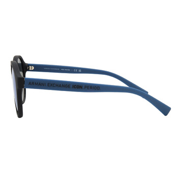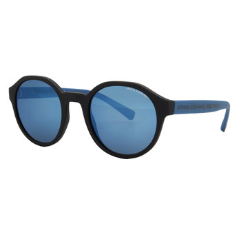 Armani Exchange Sunglasses. Series number: 0AX4114S. Color code: 833555. Shape: Round. Lens Width: 51 mm. Lens Bridge: 22 mm. Arm Length: 145 mm. 100% UV protection. Frame Material: Plastic. Frame Color: Matte Black. Lenses Type: Blue Mirror Blue. Rim Style: Full-Rim. UPC/EAN code: 7895653227989. Armani Exchange Blue Mirror Blue Round Men's Sunglasses AX4114S 833555 51.