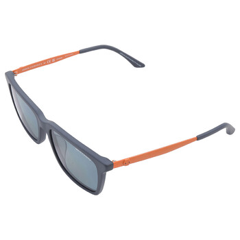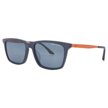Armani Exchange Sunglasses. Series number: AX4138SF. Color code: 81812V. Shape: Rectangular. Lens Width: 57 mm. Lens Bridge: 17 mm. Arm Length: 145 mm. 100% UV protection. Non-Polarized. Frame Material: Plastic. Frame Color: Matte Blue/Matte Orange. Lenses Type: Dark Blue. Rim Style: Full-Rim. UPC/EAN code: 8056597925181. Armani Exchange Dark Blue Rectangular Men's Sunglasses AX4138SF 81812V 57.