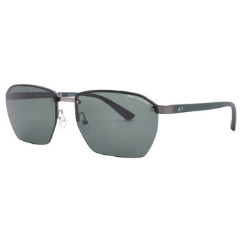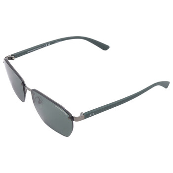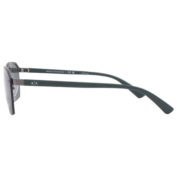 Armani Exchange Sunglasses. Series number: AX2048S. Color code: 600371. Shape: Irregular. Lens Width: 59 mm. Lens Bridge: 16 mm. Arm Length: 145 mm. 100% UV protection. Non-Polarized. Frame Material: Metal. Frame Color: Matte Gunmetal/Matte Green. Lenses Type: Dark Green. Rim Style: Semi-Rimless. UPC/EAN code: 8056597919913. Armani Exchange Dark Green Irregular Men's Sunglasses AX2048S 600371 59.