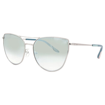 Armani Exchange Sunglasses. Series number: AX2045S. Color code: 6043W0. Shape: Cat Eye. Lens Width: 56 mm. Lens Bridge: 17 mm. Arm Length: 140 mm. 100% UV protection. Non-Polarized. Frame Material: Metal. Frame Color: Shiny Silver. Lenses Type: Gradient Green Mirror Silver. Rim Style: Full-Rim. UPC/EAN code: 7895653257733. Armani Exchange Gradient Green Mirror Silver Cat Eye Ladies Sunglasses AX2045S 6043W0 56.