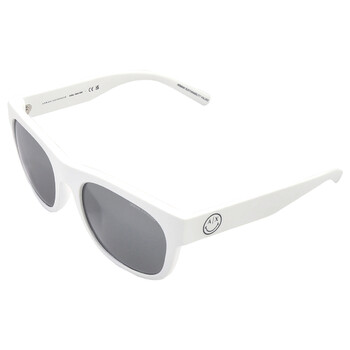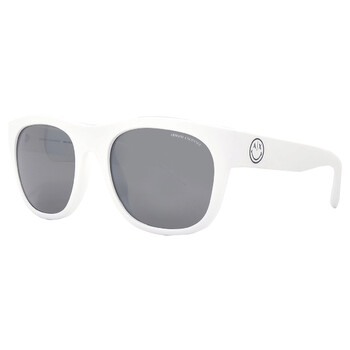 Armani Exchange Sunglasses. Series number: AX4128SU. Color code: 81566G. Shape: Square. Lens Width: 55 mm. Lens Bridge: 20 mm. Arm Length: 145 mm. 100% UV protection. Non-Polarized. Frame Material: Plastic. Frame Color: Matte White. Lenses Type: Gray Mirrored Silver. Rim Style: Full-Rim. UPC/EAN code: 7895653249394. Armani Exchange Gray Mirrored Silver Square Men's Sunglasses AX4128SU 81566G 55.
