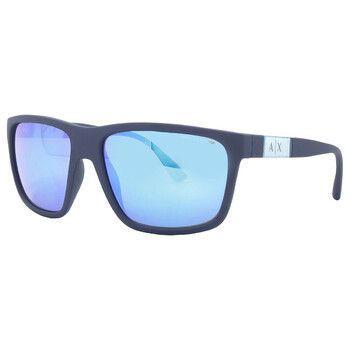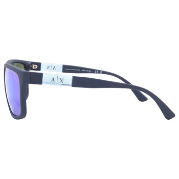 Armani Exchange Sunglasses. Series number: AX4121S. Color code: 818125. Shape: Square. Lens Width: 59 mm. Lens Bridge: 16 mm. Arm Length: 140 mm. 100% UV protection. Frame Material: Plastic. Frame Color: Matte Blue. Lenses Type: Green Mirrored Light Blue. Rim Style: Full-Rim. UPC/EAN code: 7895653236226. Armani Exchange Green Mirrored Light Blue Square Men's Sunglasses AX4121S 818125 59.