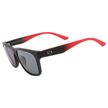 Armani Exchange Sunglasses. Series number: AX4135SF. Color code: 807881. Shape: Square. Lens Width: 59 mm. 100% UV protection. Polarized. Frame Material: Plastic. Frame Color: Black/Red. Lenses Type: Polairzed Grey. Rim Style: Full-Rim. UPC/EAN code: 8056597919982. Armani Exchange Polairzed Grey Square Men's Sunglasses AX4135SF 807881 59.