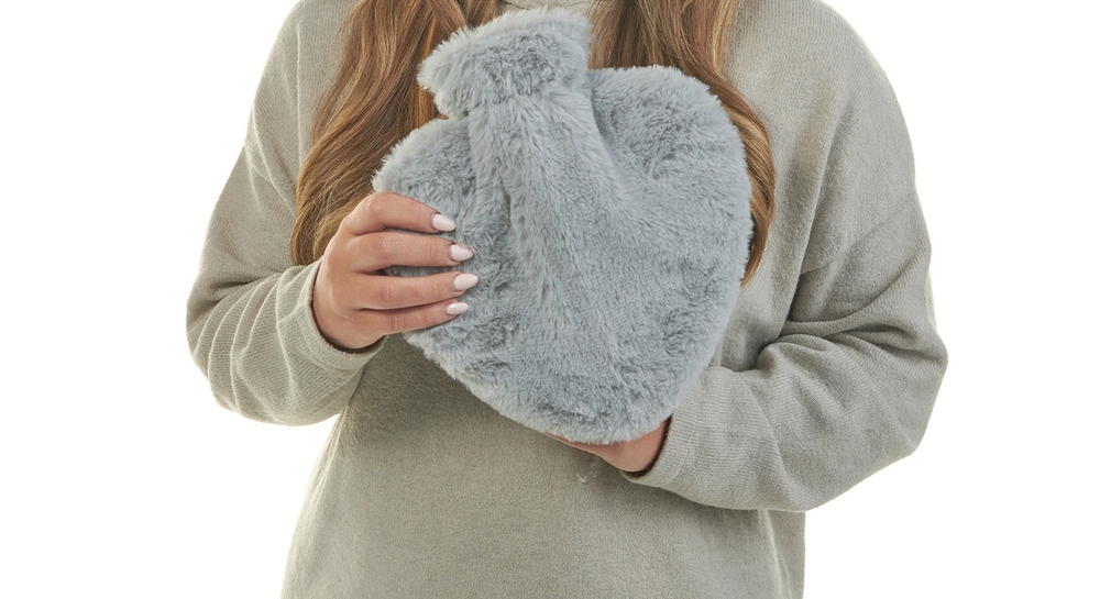Aroma Home ცხელი წყლის ბოთლი ბეწვის საფარით Gray Heart