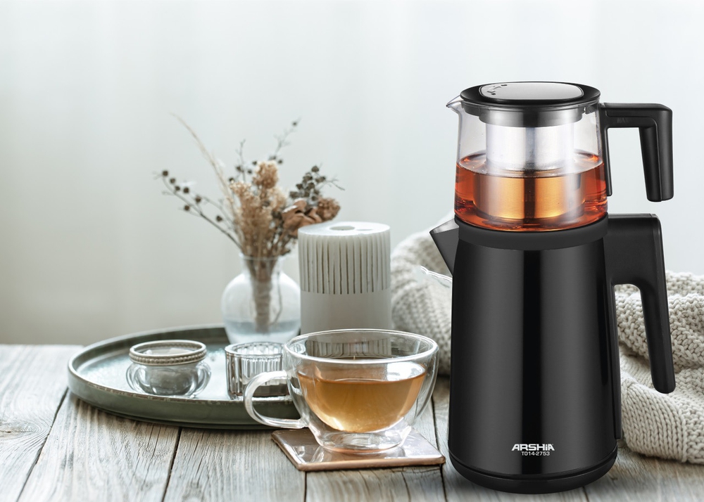 ჩაის დასაყენებელის აქვს თანამედროვე, დახვეწილი დიზაინი და კომპაქტური კორპუსი.