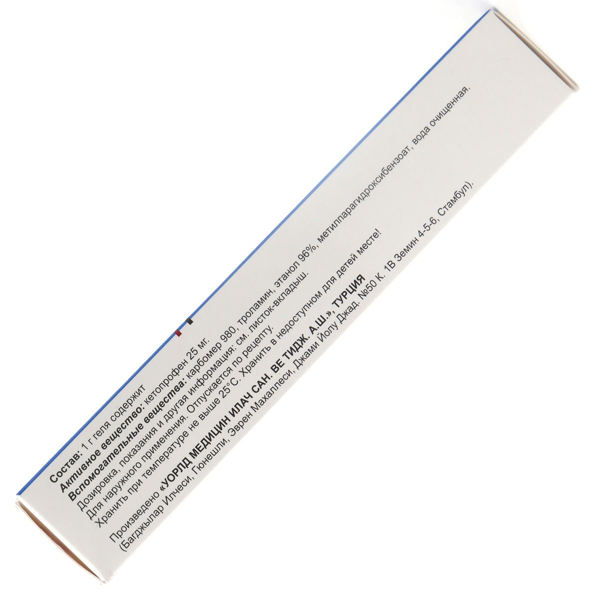 აქტიური ნივთიერება: კეტოპროფენი 2,5 გ.