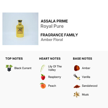 Experience the magic of Royal Pure by Assala Prime — a fragrance that celebrates individuality, elegance, and the art of fine perfumery. This item is only available for shipping within the Contiguous United States and Canada.