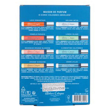 Indulge in the captivating collection of Atelier Cologne's Mini Set, a magnificent array of ladies' fragrances. This set features eight exquisite colognes, each with a unique scent that is sure to make a statement.