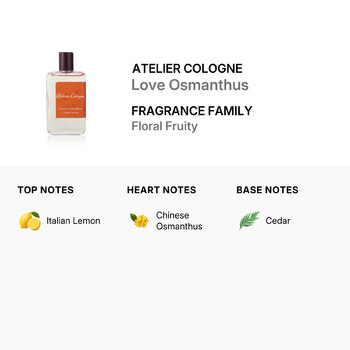Crafted by the renowned design house Atelier Cologne, Love Osmanthus combines natural elegance with a modern twist. Its unisex composition makes it a versatile choice for anyone who appreciates sophisticated, clean, and uplifting fragrances.