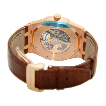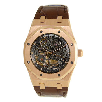 18kt rose gold case with a brown crocodile leather strap. 8 screws fixed 18kt rose gold bezel. Skeleton dial with gold-tone hands and index hour markers. Dial Type: Analog. Audemars Piguet Calibre 3129 automatic movement with a 60-hour power reserve. Scratch resistant sapphire crystal. Pull / push crown. Skeleton transparent case back. Octagon case shape. Case size: 39 mm. Deployment clasp. Water resistant at 20 meters / 65 feet. Functions: hours, minutes, seconds. Dress watch style. Watch label: Swiss Made. Item Variations: 15305OR OO D088CR 01, 15305OR-OO-D088CR-01, 15305OROOD088CR01. Audemars and Piget Royal Oak Men's Watch 15305OR.OO.D088CR.01.