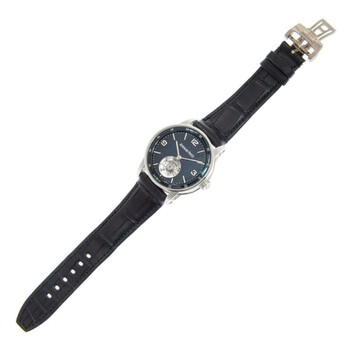 18kt white gold case with a black alligator band. Fixed black 18kt white gold bezel. Blue dial with silver-tone hands and Arabic numeral hour markers. Minute markers around the outer rim. Dial Type: Analog. Audemars Piguet Calibre 2950 automatic movement with a 65-hour power reserve. Scratch resistant sapphire crystal. Screw down crown. Transparent see through case back. Round case shape, case size: 41 mm, case thickness: 11.8 mm. Deployment with push button release clasp. Water resistant at 30 meters / 100 feet. Functions: flying tourbillon, hour, minute. Additional Info: original box, international warranty card, manual (complete accessories). Code 11.59 Series. Luxury watch style. Watch label: Swiss Made. Audemars Piguet CODE 11.59 Tourbillon Automatic Blue Dial Men's Watch 26396BC.OO.D002CR.01.