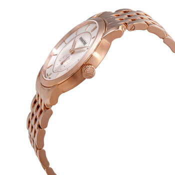 18kt rose gold case with a 18kt rose gold. Fixed 18kt rose gold bezel. Silver dial with rose gold-tone hands and index hour markers. Dial Type: Analog. Small seconds sub-dial. Hand wind movement with a 60-hour power reserve. Scratch resistant sapphire crystal. Pull / push crown. Transparent case back. Round case shape. Case size: 33 mm. Deployment clasp. Water resistant at 30 meters / 100 feet. Functions: hour, minute, second. Jules Audemars Series. Luxury watch style. Watch label: Swiss Made. Item Variations: 77250OR OO 1270OR 01, 77250OR-OO-1270OR-01, 77250OROO1270OR01. Audemars Piguet Jules Audemars 18kt Rose Gold Ladies Watch 77250OR.OO.1270OR.01.