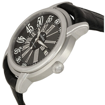 18kt white gold case with a black leather strap. Fixed 18kt white gold bezel. Black dial dial with luminous hands and Roman numeral hour markers. Oversize Arabic numeral minute markers (at 5 minute intervals). Dial Type: Analog. Luminescent hands and dial markers. Date display at the 3 o'clock position. Self winding automatic movement. Scratch resistant sapphire crystal. Skeleton case back. Case diameter: 45 mm. Case thickness: 9 mm. Oval case shape. Deployment clasp. Water resistant at 20 meters / 65 feet. Functions: hours, minutes, seconds, calendar. Luxury watch style. Watch label: Swiss Made. Item Variations: 15320BC.OO.D002CR.01. Audemars Piguet Millenary Men's Watch 15320BC.OO.D002CR.01.