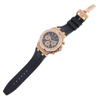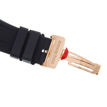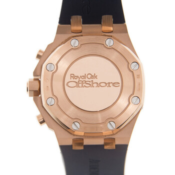 18kt rose gold case with a dark blue rubber strap. 8 screws fixed 18kt rose gold diamond set bezel. Blue dial with rose gold hands and index hour markers. Minute markers around the outer rim. Dial Type: Analog. Luminescent hands and markers. Date display between 4 and 5 o'clock position. Chronograph - three sub-dials displaying: 60 second, 30 minute and 12 hour. Audemars Piguet Calibre 2385 Automatic movement, containing 37 Jewels, composed of 304 parts, bitting at 21600 vph, and has a power reserve of approximately 40 hours. Scratch resistant sapphire crystal. Screw down crown. Solid case back. Octagon case shape, case size: 37 mm, case thickness: 12.35 mm. Fold over clasp. Water resistant at 50 meters / 165 feet. Functions: chronograph, column wheel, date, hour, minute, small second. Additional Info: original box, international warranty card, manual (complete accessories). Luxury watch style. Watch label: Swiss Made. Audemars Piguet Royal Oak Chronograph Automatic Diamond Blue Dial Unisex Watch 26236ORZZD027CA01.