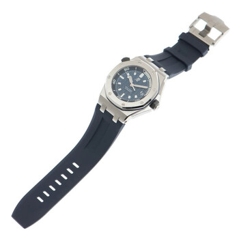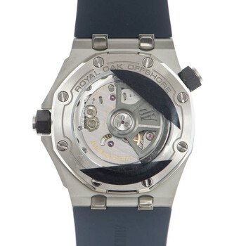 Silver-tone stainless steel case with a blue rubber strap. Fixed silver-tone stainless steel bezel. Blue dial with silver-tone hands and index hour markers. Minute markers around the outer rim. Dial Type: Analog. Luminescent hands and markers. Date display at the 3 o'clock position. Automatic movement. Scratch resistant sapphire crystal. Screw down crown. Transparent see through case back. Octagon case shape, case size: 42 mm. Buckle clasp. Water resistant at 300 meters / 1000 feet. Functions: date, hour, minute, second. Additional Info: original box, international warranty card, manual (complete accessories). Royal Oak Offshore Series. Luxury watch style. Watch label: Swiss Made. Audemars Piguet Royal Oak Offshore Automatic Blue Dial Unisex Watch 15720ST.OO.A027CA.01.