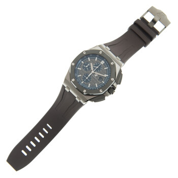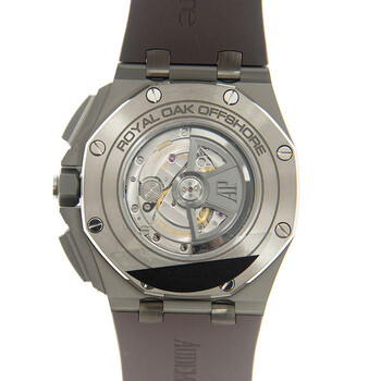 Titanium case with a grey rubber strap. 8 screws fixed ceramic bezel. Grey dial with index hour markers. Tachymeter scale around the outer rim. Dial Type: Analog. Luminescent hands and markers. Date display at the 3 o'clock position. Chronograph - three sub-dials displaying: 60 second, 30 minute and 12 hour. Audemars Piguet Calibre 3126 automatic movement with a 50-hour power reserve. Scratch resistant sapphire crystal. Screw down crown. Transparent case back. Octagon case shape, case size: 44 mm, case thickness: 14.4 mm. Pin buckle clasp. Water resistant at 100 meters / 330 feet. Functions: chronograph, date, hour, minute, second. Royal Oak Offshore Series. Luxury watch style. Watch label: Swiss Made. Audemars Piguet Royal Oak Offshore Chronograph Automatic Grey Dial Men's Watch 26400IO.OO.A004CA.02.
