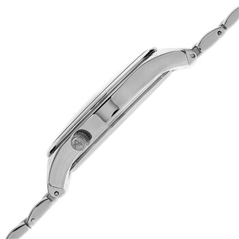 Silver-tone composite metal case with a silver-tone alloy bracelet. Fixed silver-tone composite metal bezel. Black dial with silver-tone lance-style hands and index hour markers. Minute markers around the outer rim. Dial Type: Analog. Two displays showing: small seconds and 12 hour. Quartz movement. Scratch resistant mineral crystal. Pull / push crown. Solid case back. Round case shape. Case size: 42 mm. Case thickness: 11 mm. Band width: 20 mm. Band length: 8.5 inches. Fold over clasp. Water resistant at 10 meters / 33 feet. Functions: dual time, hour, minute. Dual Time Series. Fashion watch style. August Steiner Black Dial Men's Watch AS8141SSB.