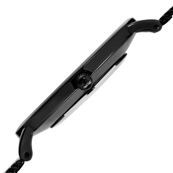 Black-plated alloy case with a black-plated stainless steel mesh bracelet. Fixed black-plated bezel. Blue dial with black hands and index hour markers. Minute markers around the outer rim. Dial Type: Analog. Quartz movement. Scratch resistant sapphire-coated mineral crystal. Pull / push crown. Solid case back. Round case shape. Case size: 40 mm. Case thickness: 7 mm. Band width: 20 mm. Fold over slip through clasp. Water resistant at 30 meters / 100 feet. Functions: hour, minute. Casual watch style. Watch label: Japan Movt. August Steiner Blue Dial Mesh Men's Watch AS8219BK.
