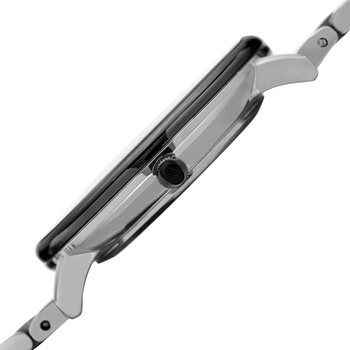 Stainless steel case with a stainless steel bracelet. Fixed black ion-plated bezel. Black dial with silver-tone leaf-style hands and Arabic numeral hour markers. Minute markers around an inner ring. Dial Type: Analog. Date display above the 6 o'clock position. Quartz movement. Scratch resistant mineral crystal. Pull / push crown. Solid case back. Round case shape. Case size: 40 mm. Case thickness: 9.7 mm. Band width: 22 mm. Band length: 8 inches. Butterfly clasp. Water resistant at 30 meters / 100 feet. Functions: date, hour, minute, second. Fashion watch style. August Steiner Quartz Black Dial Men's Watch AS8257SSBK.