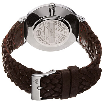 Silver-tone composite metal case with a brown (plattered) leather strap. Fixed silver-tone composite metal bezel. Silver dial with rose gold-tone hands and index hour markers. Minute markers around the outer rim. Dial Type: Analog. Date display above the 6 o'clock position. Quartz movement. Scratch resistant Hardlex crystal. Pull / push crown. Solid case back. Round case shape. Case size: 42 mm. Case thickness: 9 mm. Band width: 20 mm. Tang clasp. Water resistant at 30 meters / 100 feet. Functions: date, hour, minute, second. Casual watch style. August Steiner Quartz Silver Dial Men's Watch AS8293BR.