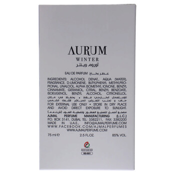 Presented in a 2.5 oz bottle, Aurum Winter is more than just a perfume; it is a statement of sophistication and charm, designed specifically for women who are not afraid to embrace their unique style. Encapsulating the enchanting allure of winter, this fragrance is a perfect accessory for any occasion, whether it's a casual day out or a glamorous evening event.