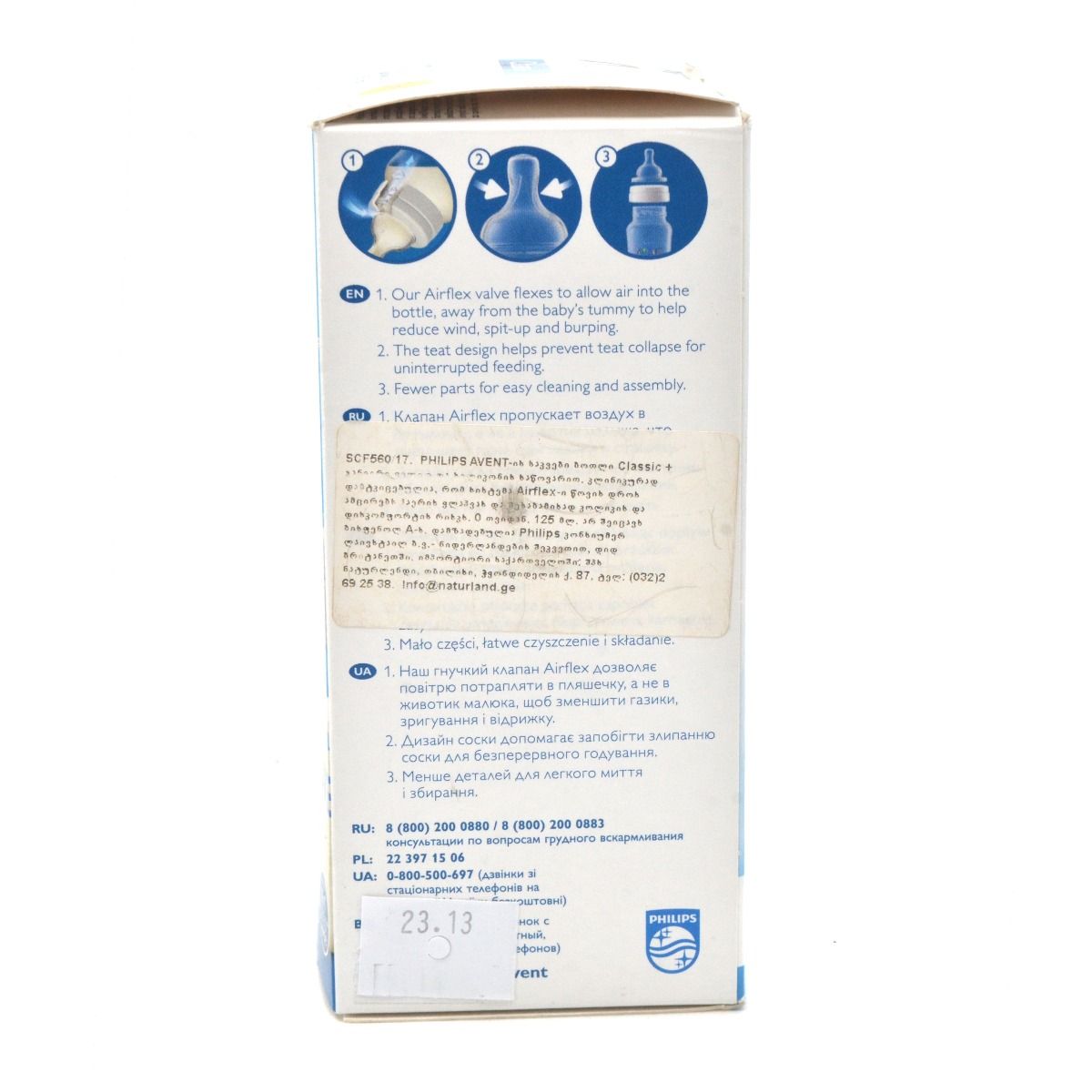Philips AVENT SCF810/17 Classic+ პოლიპროპილენის ბოთლი, 0 თვე+, 125მლ: