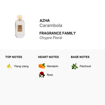 Carambola belongs to the Chypre Floral fragrance family, offering a balanced mix of freshness and warmth. The scent opens with the exotic aroma of ylang-ylang, creating a luxurious and inviting first impression. At its heart, the fragrance reveals a delightful blend of sweet mandarin and romantic rose, adding a soft and feminine touch. Finally, the base note of patchouli gives the perfume a deep, lasting finish that lingers beautifully on the skin.