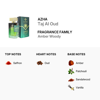Taj Al Oud belongs to the Amber Woody fragrance family, blending tradition with contemporary elegance. It opens with a bold top note of exotic saffron, setting the stage for a warm and powerful heart of authentic oud. As the scent deepens, base notes of smooth amber, earthy patchouli, creamy sandalwood, and a hint of sweet vanilla bring balance and depth, creating a truly unforgettable experience.